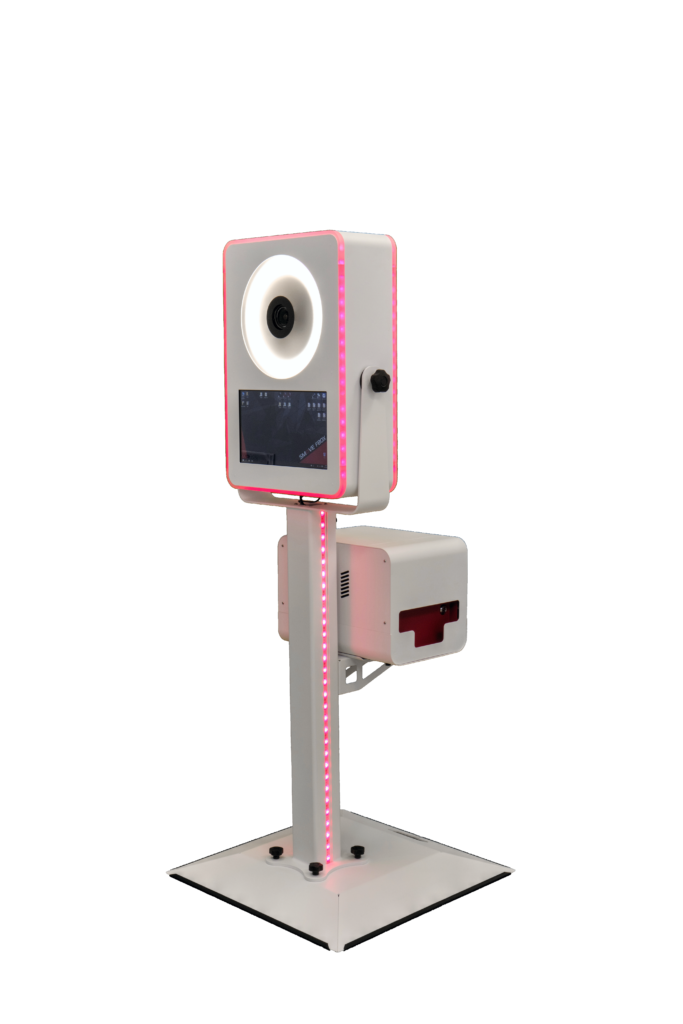 Une borne design avec éclairage led qui peut être décliné en plusieurs couleurs, des accessoires sont proposés pour les photos.